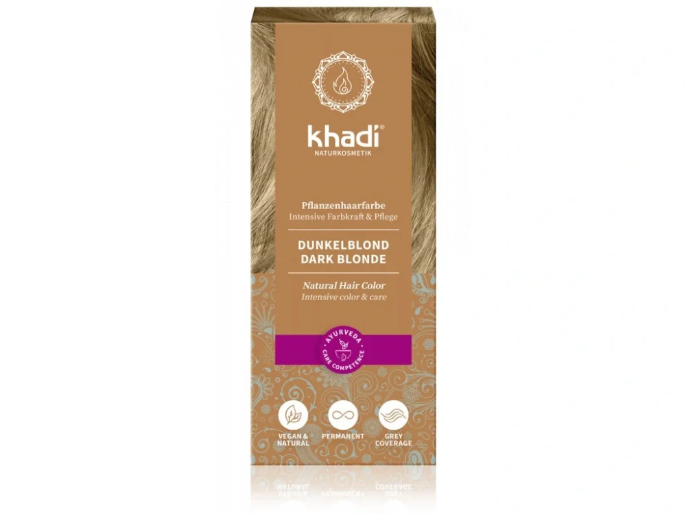 Tmavá blond je chladný odstín, působí sebevědomě a je absolutně trendová – Khadi rostlinná barva na vlasy Tmavá blond barví vlasy sytou, popelavě tmavou blond barvou, bez podílu červeného tónu. Výsledný tón závisí na výchozí barvě Vašich vlasů, jakož i na zvolené době působení. Světlým vlasům dává středně až tmavě popelavý blond odstín, tmavým vlasům dodá krásný chladný lesk. A spolu s barvou zároveň výrazný lesk, bohatý objem a intenzivní péči v jednom kroku!